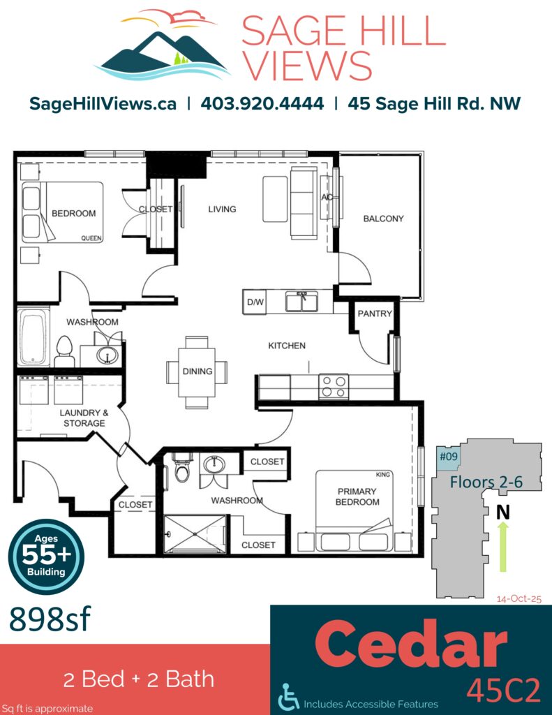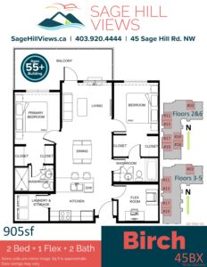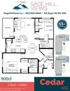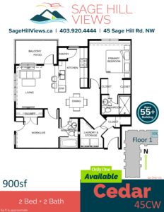 Sage Hill Views 55+ Active Adult Living rests in the Sage Hill neighbourhood of North West Calgary, Alberta. You’ll fit right into this fast-developing community! It’s the future home to a branch of the Calgary Public Library and C-train Green Line expansion. Conveniently located less than a 5-minute walk from Sage Hills Crossing, one of many nearby shopping centres, Sage Hill Views is easily accessible by the Shaganappi Trail, the Symons Valley Parkway, and is short drive from Stoney Trail.